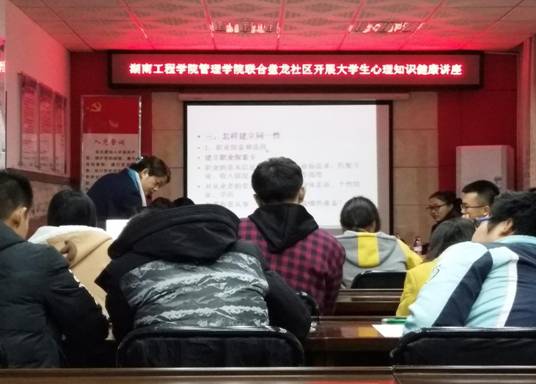 为丰富大学课余生活,提高大学生心理健康知识水平。伟德国际victor1946管理学院联合盘龙社区于12月4日组织开展大学生心理知识健康讲座。