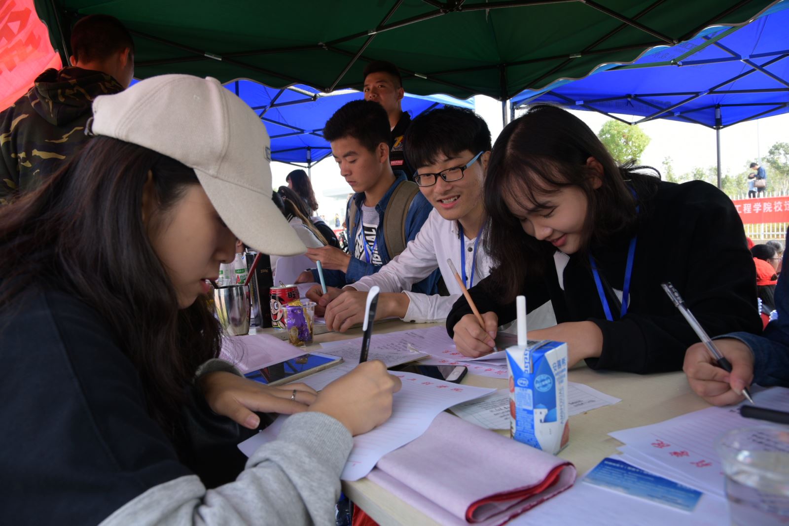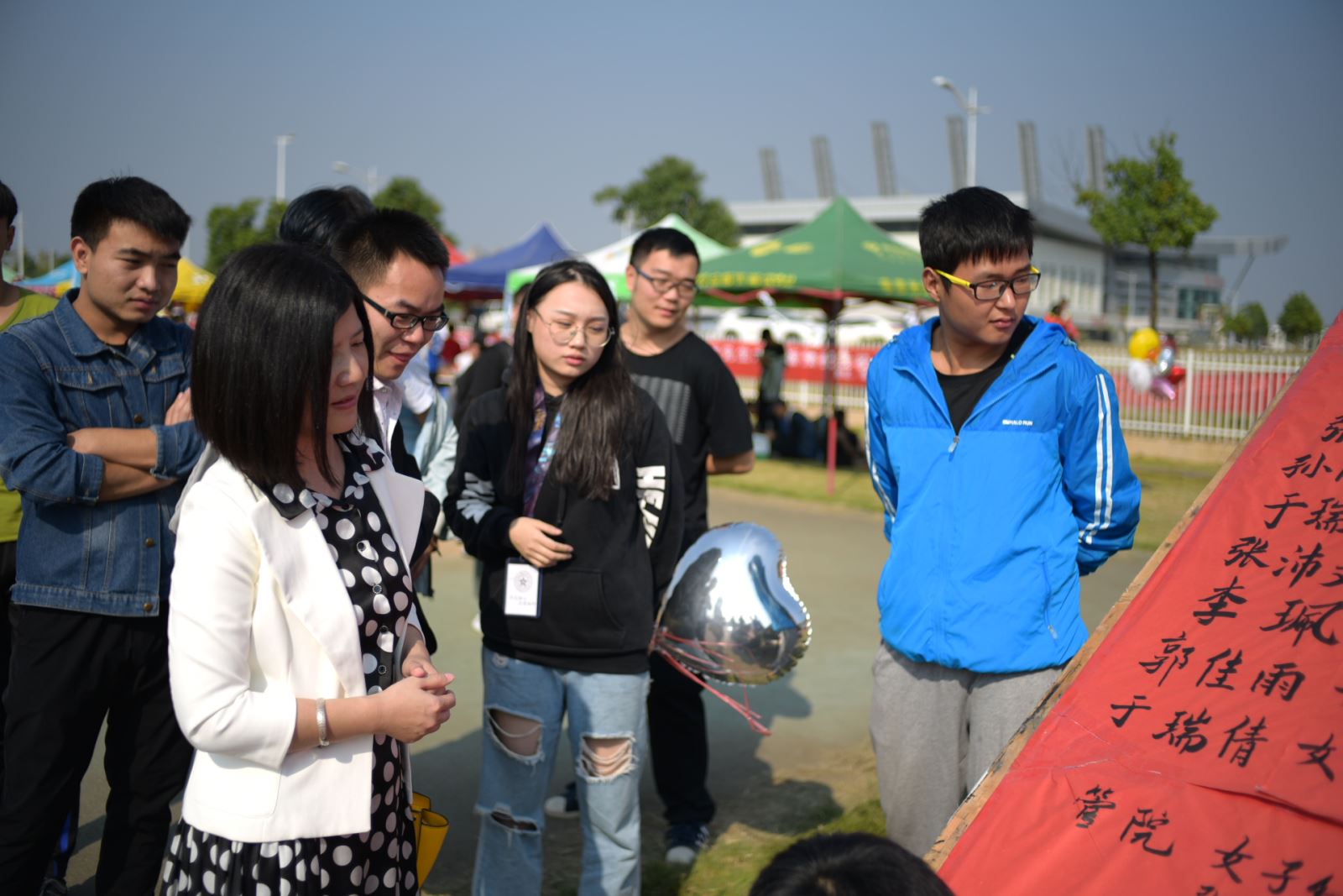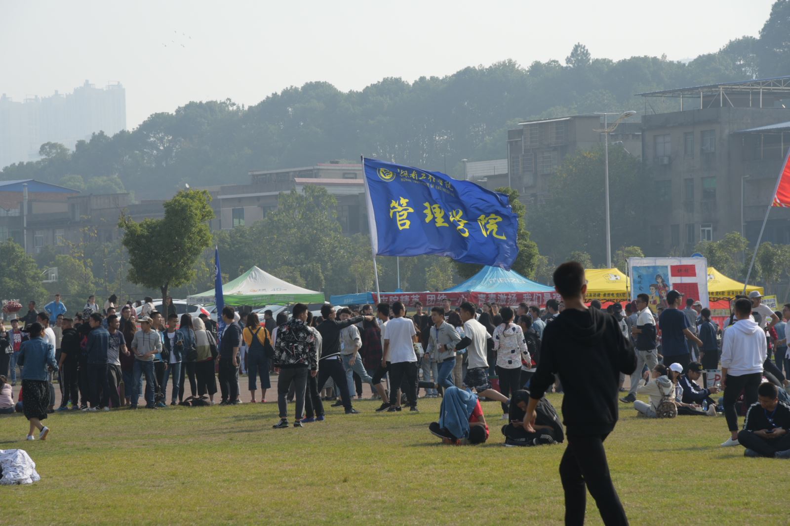 快看,学院老师和未参赛的同学们正在跑道边上为你们呐喊,为运动员们加油。把心中的希望用最大的力量、最大的声音传递给各运动健儿们。每当他们到终点了,完成比赛了,一起欢呼,不仅仅是因为胜利,更是因为大家是团结的一家人。管理学院学生会以及老师也都为每一位参赛选手默默的献出力量,服务他们,因为他们是大家的坚实后盾。
