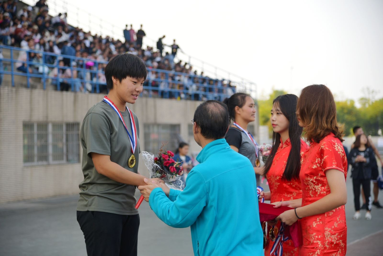 赛跑上你们矫健的身姿吸引着每个人的视线,叩动每个人的心弦,你们在赛场上肆意挥洒青春。