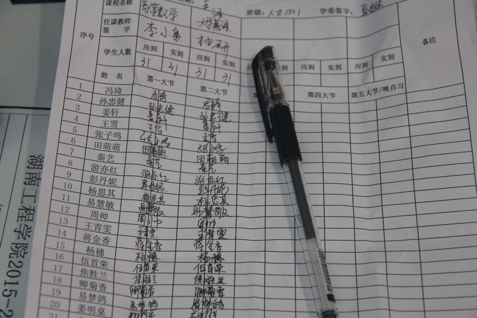 “上课签到制”是由每班的学习委员负责,由班长督促实施,每天,每小节课后学习委员负责组织本班学生签到,并对于迟到的同学不予签到,课后由任课老师签字确认。同时学习部组织查课,对每节课的到课情况做好记录,统计旷课、请假学生名单。11月23日学习部干事杨程,银丹绿对学院各班级进行了查课,核实了各班签到情况,并对缺课学生及时做了统计。学习部的统计数据显示,自从实施“上课签到制”后,学院的平均到课率从89%上升到97%,成效显著。“上课签到制”提醒了同学们要认真上好每一堂课,不得无故旷课,有利于班级由“被动管理”向“主动管理”转变,提升了班级的自主管理能力,并形成良好的班风和学风。