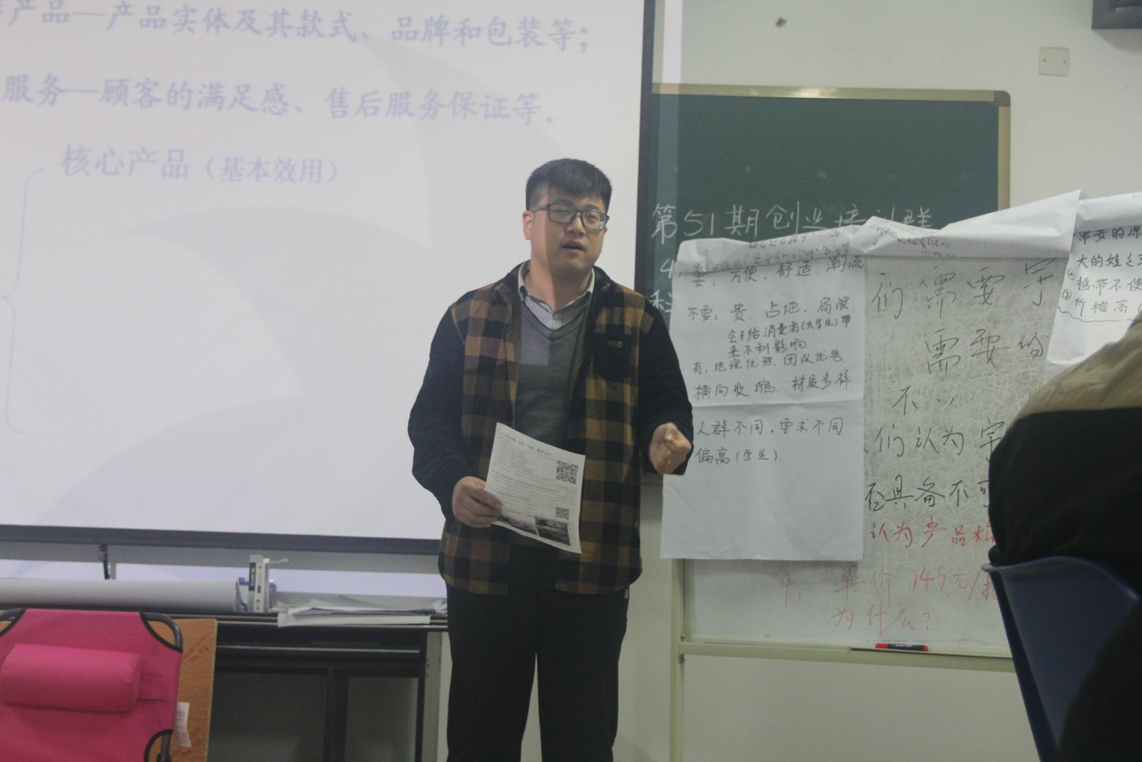 此次课堂以“市场调研和营销策划”为主题,段老师清晰而富有感染力的话语,传授着创业经验和方法。并提出了“人无我有,人有我优,人优我新,人新我特”的倡导,激励着伟德国际victor1946学子创业的激情和信心。本次邀请到我校SIYB 创业培训第36期学员陈联祥分享创业经历。今年陈联祥和他的创业团队创立了宇宙大学公司,推出了第一款具有国家实用新型专利的产品“宇宙大学椅”,陈联祥现场介绍演示了该产品的性能和用法。在老师们的讲授和指导下,大家根据课堂主题结合“宇宙大学椅”产品的营销积极讨论、相互交流、引爆创意火花。理论联系实践很好地达成了本次课堂教学的目标,激励了湖工学子的创业,也为正在拼搏的创业学子提供了有益的帮助。
