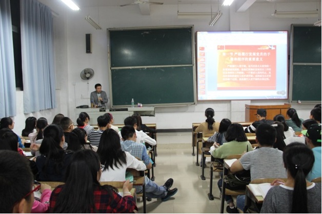 10月14号晚上7点,管理学院第十九期分党校培训在新校区D-102顺利开课。管理学院党总支副书记钱祖煜为151名学员讲了题为《发展党员工作的手续和程序》的第一堂党课。