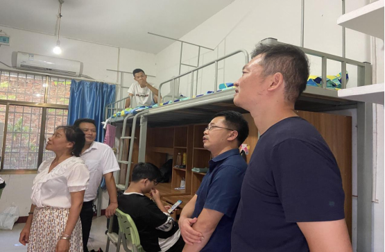 为了解新生入住情况,余博、潘立军下寝查看宿舍环境,与新生亲切交谈,并鼓励新生早日适应新学校,融入新生活;志存高远,不负韶华,争取在接下来四年的时间取得优异的成绩。