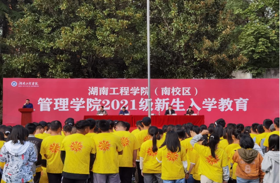 新生入学教育是大学教育的起点,也是每位新生的大学必修课。10月12日下午14:30,管理学院在南校区操场召开了2021级新生入学教育大会。管理学院院长徐运保、副院长潘立军、副院长张维梅、党委副书记谭超、学办主任黎博等全体院领导出席本次大会,辅导员老师、新生班主任及全体21级新生参加会议。会议由学院党委书记余博主持。
