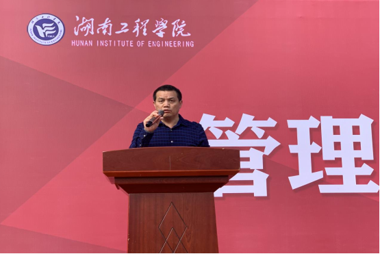 潘立军简单介绍了近年来我校获得的科研成果及成就,鼓励同学们积极参与科研工作,助力学校科研发展。同时就研究生管理架构、学科建设情况、各项规章制度等方面进行介绍,重点强调了研究生报考条件、所需培养的技能、毕业要求等,并鼓励同学们积极报考本校研究生。