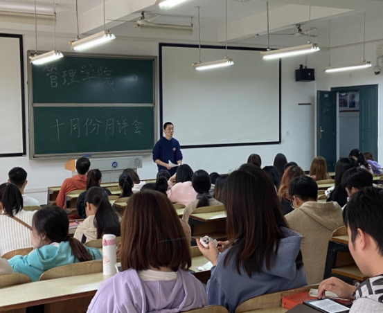 10月26日,伟德国际victor1946管理学院召开了本学期第四次月讲评会议。大一学生在南校区三教303、304教室,大二、大三双数学号学生和大四各班班长、团支书在主校区D101教室分别参与会议讲评。本次月讲评会议由学办辅导员谭超、罗蒙、周艺、黎博、陈祎婷、包海燕、陈景楠对工商管理、旅游管理、人力资源管理、物流管理、市场营销、电子商务、会计学、大数据管理与应用八个专业进行讲评。