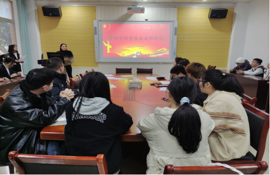 为贯彻落实《关于推动高校学生会(研究生会)深化改革的若干意见》及《伟德国际victor1946学生会章程》有关要求,加强对学生干部的监督和管理,全面准确地掌握学生干部的工作情况,提高学生干部的责任意识、服务意识和大局意识。12月24日中午12点,管理学院在F104组织召开学生会工作人员述职评议会议。学办主任黎博、团总支书记陈祎婷、学办辅导员、学院团总支、学生会工作人员、学生代表参加了本次会议,会议由易班管理中心部长熊旭主持。