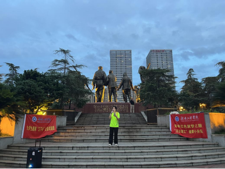 实践团一行从学校出发,步行前往抗日阵亡将士纪念碑祭奠英烈,带队老师向团队成员讲述了抗日战争时期,湘军浴血奋战、守卫湖湘的故事,并带领团队成员于纪念碑前重温入团誓词。