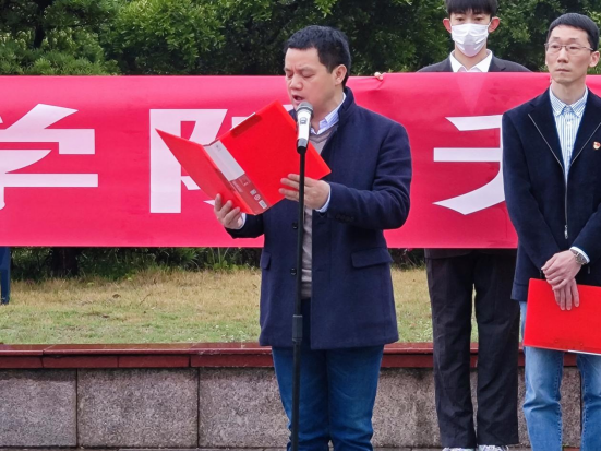 徐运保作国旗下的讲话。他对广大学子提出三点要求:一是与党同心,跟党奋斗;二是刻苦研习,开拓创新;三是心怀家国,勇敢追梦。希望同学们以砥砺奋进之初心、只争朝夕之勇行,在奋进新征程中展现湖工管院学子的青春风采。