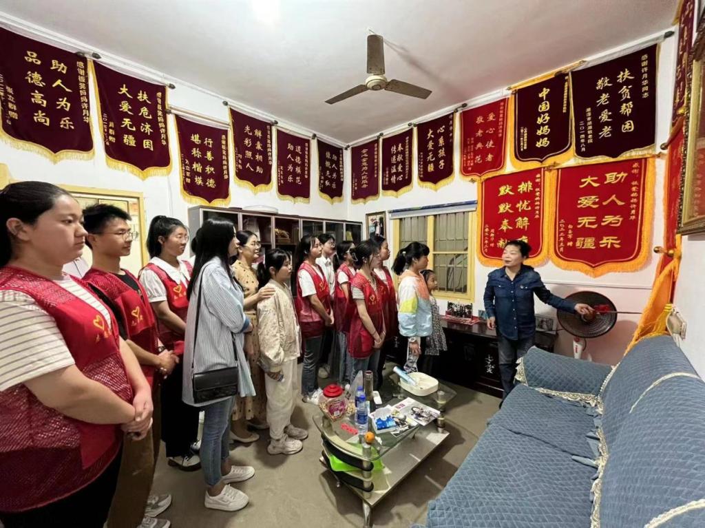 5月3日上午,全国党建工作样板支部培育创建单位、管理学院教工二支部携手学生第三党支部前往“板凳妈妈”许月华书画工作室开展以“传承五四精神,绽放青春风采”为主题的“五四”青年节主题教育活动。活动过程中,同学们给“板凳妈妈”献花,参观“板凳妈妈”书画工作室,教“板凳妈妈”折纸花,倾听湘潭市社会福利院原副院长袁琪讲述“板凳妈妈”的传奇故事,合唱《光荣啊,中国共青团》,活动在大家悠扬的歌声中落下帷幕。