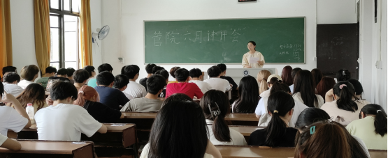 2023年6月21日,伟德国际victor1946管理学院大一主校区全体新生,南校区学号双数的同学,大二各专业(除会计学专业之外)班级全体同学,大二会计学专业各班级学号双数的同学,大三主要班委参与了本次的会议讲评。本次月讲评会议由谭超、黎博、包海燕、周艺、陈祎婷、陈景楠、李林、彭小玲、谭浩博九名学办老师对工商管理等八个专业进行线下月讲评。本次月讲评会议分为常规工作通报、学生活动、共青团工作、党务工作和安全教育五个部分。