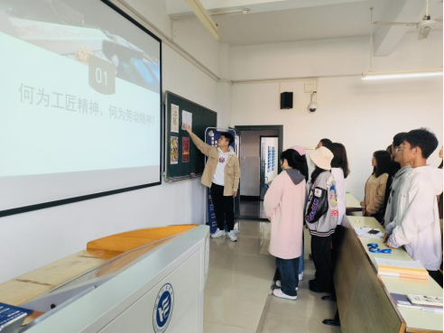 随后,回到教室通过PPT课件讲解、观看视频、海报设计等形式向学生们讲解了劳模的榜样力量,用劳模的先进事迹感召学生,用劳模的优秀品质引领风尚,让学生们深植“劳动光荣、技能宝贵、创造伟大”的观念,深刻感悟劳动精神的魅力和工匠精神的力量。市场营销2201班赵耀表示“这些先进人物创造了许多令人赞叹的成果。作为管院学子,我们要向他们学习,将劳模精神和工匠精神带到学习与生活中去”。