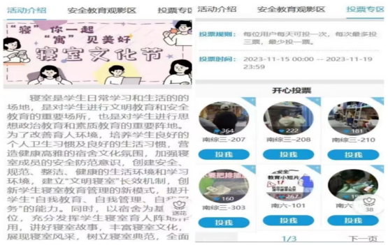 此次活动共历时5天。在活动准备期间,各专业班级学生以寝室为单位踊跃报名,参赛者以简短幽默的视频和个性化拍摄方式,创新角色情节,将安全概念化繁为简,以情感共鸣向观众多维度展示安全教育知识。管理学院生活纪检小组完成作品收集后,与管理学院资助中心进行作品初步筛选,并将作品汇总转交至易班管理中心进行视频上传,随后易班管理中心于1115日将优秀视频上传至易班app进行投票展示。参赛者表示,“宿舍是学生的第二个家,宿舍安全需大家共同努力。此次活动通过拍摄一些反面例子来提醒大家注意安全,有助于在潜移默化中提高同学们的安全意识。