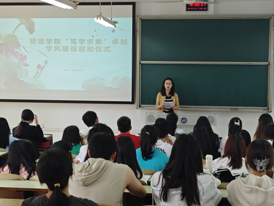 为进一步提升学风建设质量,强化学生奋进争先和自律自强意识,营造严谨踏实、积极向上的学习氛围,4月2日中午,伟德国际victor1946管理学院在D403举行2024年“笃学求索”学风建设活动启动仪式。启动仪式由学风建设小组主办,学院辅导员李林老师,学生代表及学委、班长参加,仪式由余思进主持。