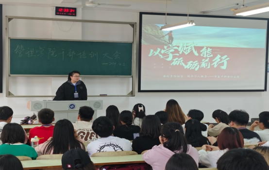 为加强学生干部队伍建设,发挥学生干部的模范带头作用,推动学生干部在日常工作中更好地服务广大同学,为学校发展作出更大的贡献,伟德国际victor1946管理学院学生联合组织于4月2日12:00在主教学楼D403举办管理学院干部培训大会。