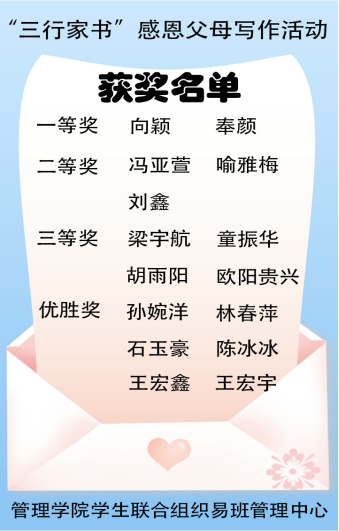 “三行家书”感恩父母写作活动获奖名单