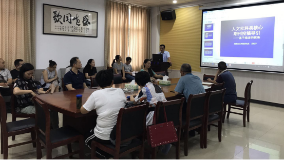 2020年7月10日下午,管理学院特邀湖南省社会科学界联合会《湖南社会科学》杂志社吴纪宁主编在F-104举办《人文社科类核心期刊投稿导引》讲座。管理学院院长徐运保、副院长黄毅、潘立军及各相关学院老师参加本次讲座。