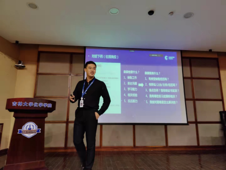 最后,曹凯也想送给学弟学妹们一句话,这个世界没有那么浮躁,浮躁的是自己的心,人生也并非一成不变,不变的是自己的思想,向前看,向远处看,路在脚下,锲而不舍,敢为人先,我们每一个湖工人都在路上。